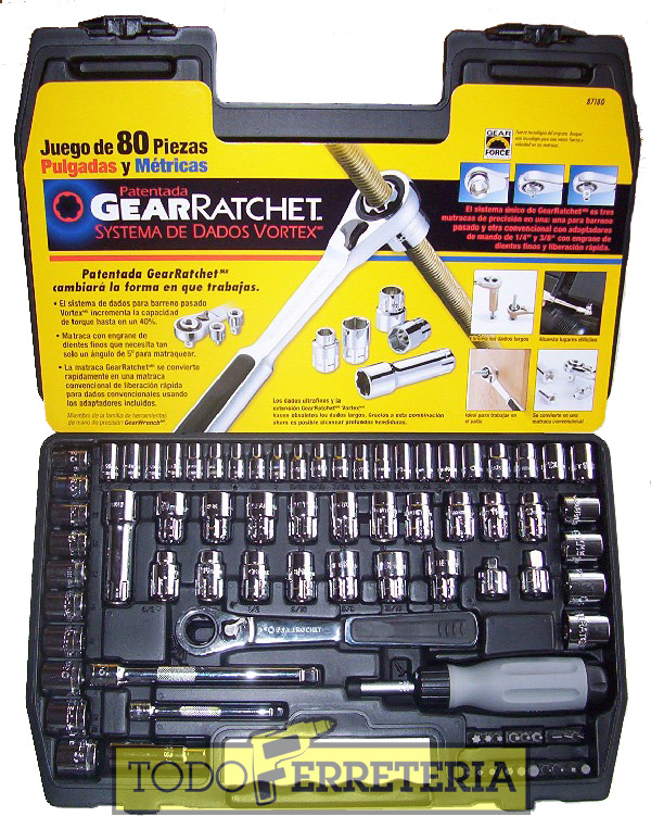 • GearRatchet es también una llave crique convencional con mangos intercambiables de 1/4" y 3/8"