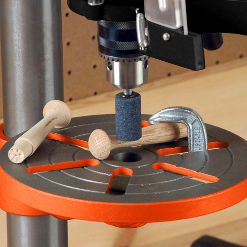 • Mesa circular perforada para fácil sujeción de materiales