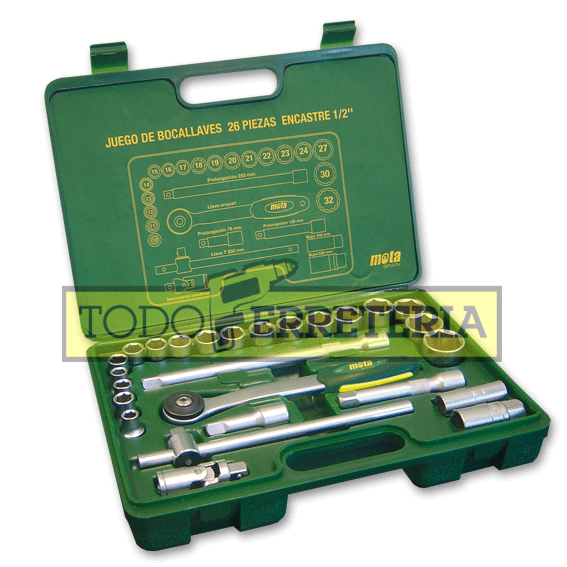 • 18 Tubos hexagonales encastre 1/2" de: 10-11-12-13-14-15-16-17-18-19-20-21-22-23-24-27-30-32MM