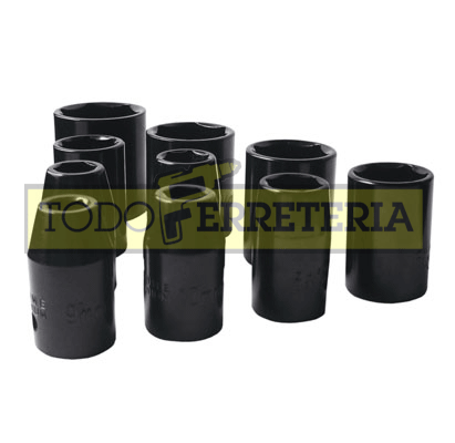 • 10 Bocallaves de impacto encastre de 1/2" de: 9-10-11-13-14-17-19-22-24-27MM