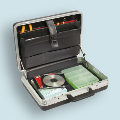 • En la parte interior del mismose ubican: en el cuerpo superior una bandeja termaformada en Poliestireno de Alto impacto, con elásticos para sujetar ditintos tipos de herramientas o enseres útiles. Contiene bandeja similar a la ya mencionada en la parte inferior para ubicación de elementos de mayor tamaño, con elásticos reforzados para una mejor sujeción