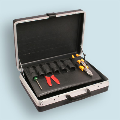• En la parte interior del mismose ubican: en el cuerpo superior una bandeja termaformada en Poliestireno de Alto impacto, con elásticos para sujetar ditintos tipos de herramientas o enseres útiles. Contiene bandeja similar a la ya mencionada en la parte inferior para ubicación de elementos de mayor tamaño, con elásticos reforzados para una mejor sujeción