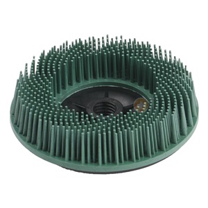 • Los productos Bristle son abrasivos tridimensionales moldeados en forma de discos, utilizando una resina polimérica impregnada en material RegaliteMR (una mezcla patentada por 3M de mineral de óxido de aluminio y óxido de aluminio cerámico CubitronMR)