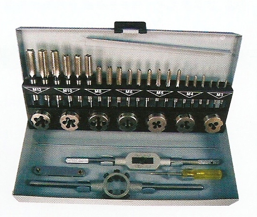 • Juego de 32 piezas de acero rápido de machos y cojinetes milimétricos