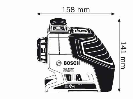 • Incluye: nivel Bosch GLL 2-80 P, trípode Bosch BS 150, estuche de tela y 4 pilas AA