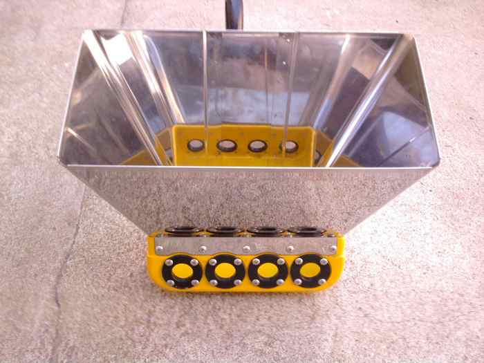• Volviendo a la revocadora en sí, como dijimos, se usa como una pala, se levanta el material de piso o carretilla, se acerca a unos 10CM de la pared a revocar, y, presionando el botón de la válvula de aire, comience a desplazarla en forma pareja, desde abajo hacia arriba, con una velocidad que la regulará buscando el espesor deseado. Cabe destacar, que la tolva proyectará su contenido por las 4 boquillas ( construidas de polyestireno UHWM, alta resistencia a la abrasión ) en 4 segundos, es así que podrá proyectar un balde de mezcla con un ancho de 20CM y una longitud de 160CM en 4 segundos, para un espesor de 1.5CM.