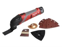 • Incluye: maletín plástico, cargador, 2 baterías 10.8V 1.3Ah, base triangular para lijas, cuchilla raspadora, 6 lijas triangular, 1 sierra bimetálica, 1 sierra diamantada, llave allen