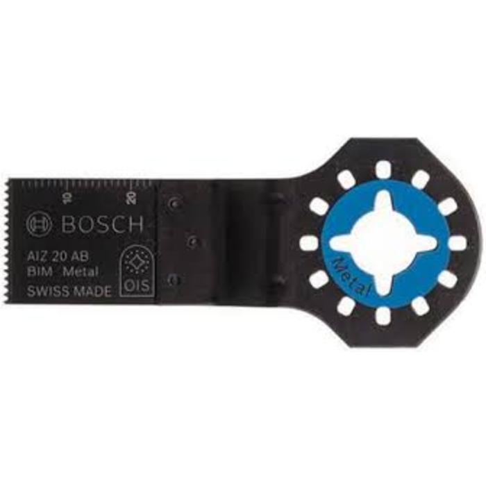 • 1 Hoja de sierra de inmersión Bosch AIZ 20 AB BIM: hoja de sierra de inmersión BIM Metal, sirve para cortar clavos a ras de superficie, cortar tubos de cobre a ras de superficie, cortes de inmersión en placas de pladur