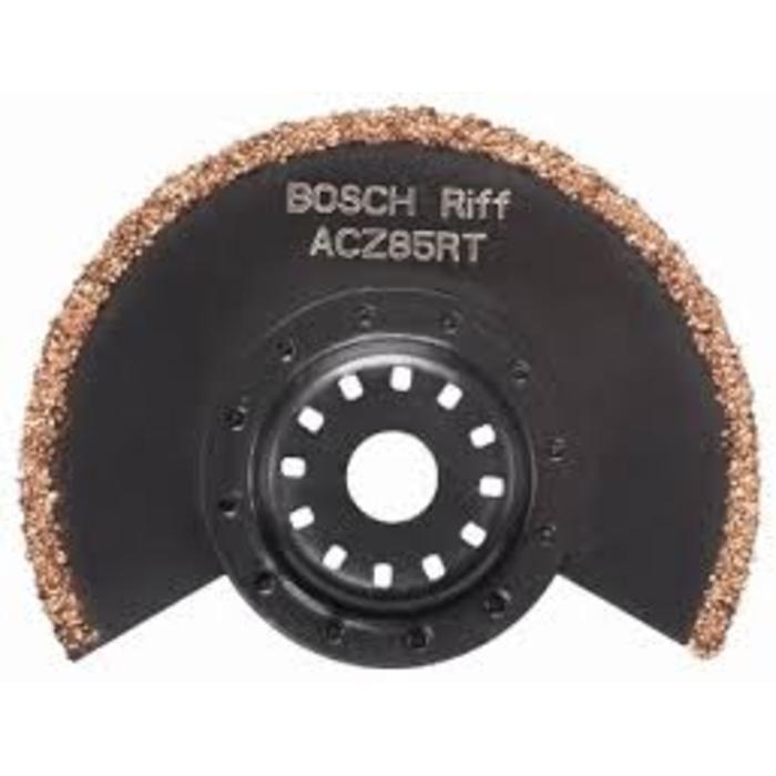 • 1 Hoja de sierra segmentada Bosch ACZ 85 RT HM: hoja de sierra segmentada HM-RIFF, sirve para quitar las juntas de azulejos y baldosas, para recortes pequeños en azulejos blandos y para cortar ranuras en hormigón poroso para el tendido de cables y tubos bajo el revoque