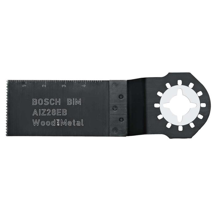 • 1 Sierra de inmersión Bosch AIZ 28 EB BIM: hoja de sierra de inmersión BIM Wood (madera) y Metal, sirve para corte profundo de inmersión en madera, materiales de madera abrasivos y plásticos, corte de tubos y perfiles no férreos de pequeñas dimensiones, corte de clavos no endurecidos, tornillos y perfiles de acero de pequeñas dimensiones