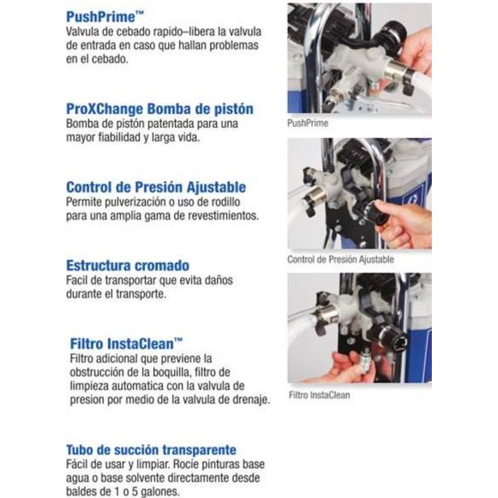 • Incluye: pistola SG3, RAC X 515 SwitchTip y Guard, manguera de 6.4MM x 15 metros, correa de transporte
