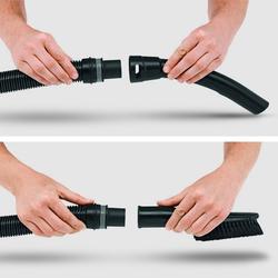 • La nueva manguera de aspiración y, recordemos, la boquilla para suelos con clips de nuevo diseño con acoplamiento mixto son decisivas para lograr una recogida de suciedad óptima y una limpieza total