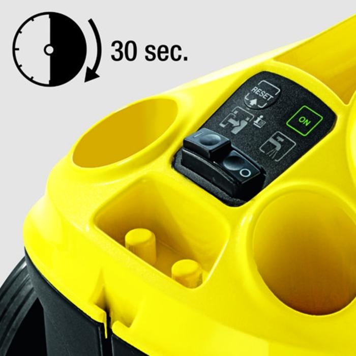 • La SC 3 de Kärcher es la limpiadora de vapor más rápida del momento. Con un tiempo de calentamiento de solo 30 segundos, la SC 3 está lista para empezar en un abrir y cerrar de ojos
