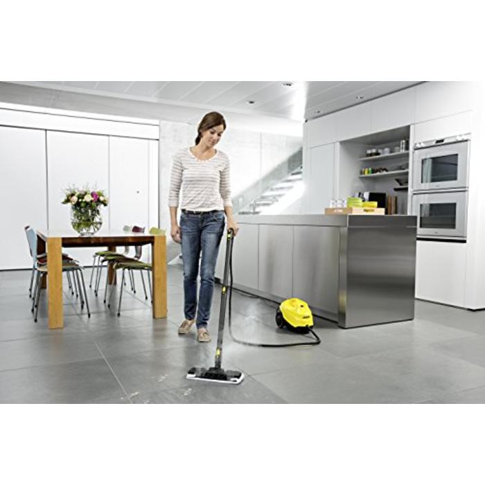 • La limpiadora de vapor SC 3 con boquilla para suelos Comfort y cartucho de descalcificación proporciona una limpieza sin interrupciones gracias al depósito de agua de llenado permanente. ¡El tiempo de calentamiento es de solo 30 segundos!
