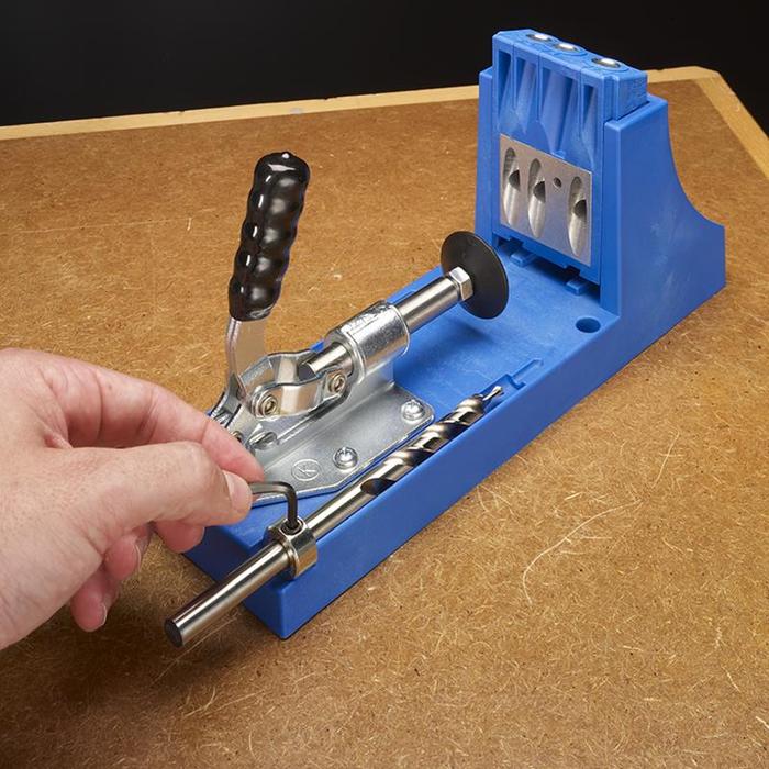 Gracias a su guía de taladro extraíble, la Kreg Jig® K4 Master System puede utilizarse de diferentes maneras: como una robusta plantilla fija a su mesa de trabajo para hacer perforaciones para tornillos ocultos a toda velocidad, una plantilla profesional para trabajar fuera de casa utilizando la base portátil, y una plantilla para reparaciones de primera calidad añadiendo bloques espaciadores a la parte inferior de la guía de taladro.