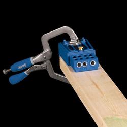 Su base de banco, además de poder atornillarse a una mesa de trabajo, puede gracias a su gran cavidad de sujeción, fijarse con una prensa de cara multiuso Kreg® o cualquier prensa sargento