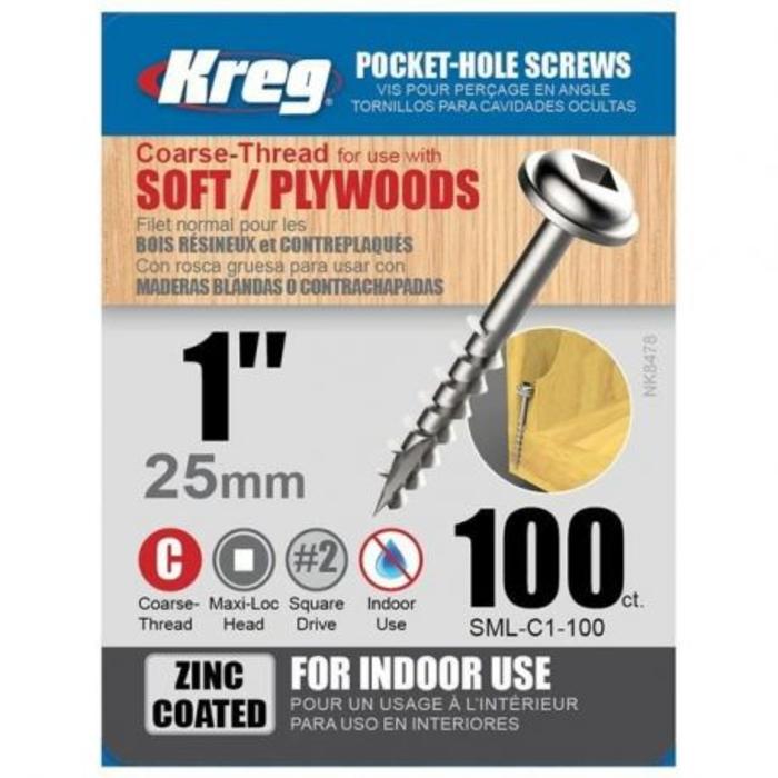 Tornillos de Zinc Kreg SML-C1-100 de 1" x 100 unidades
