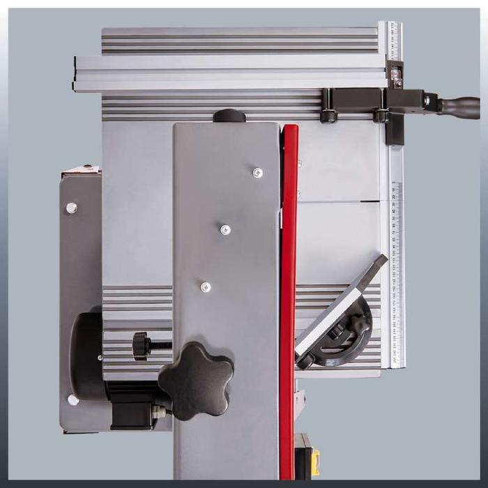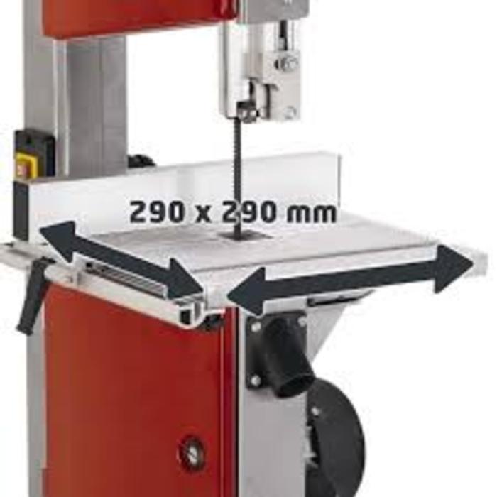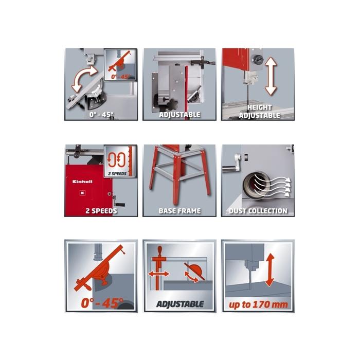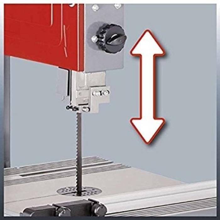 • La sierra tiene una función de ajuste de recorrido de correa y una guía de sierra de cinta ajustable en altura con protector de hoja