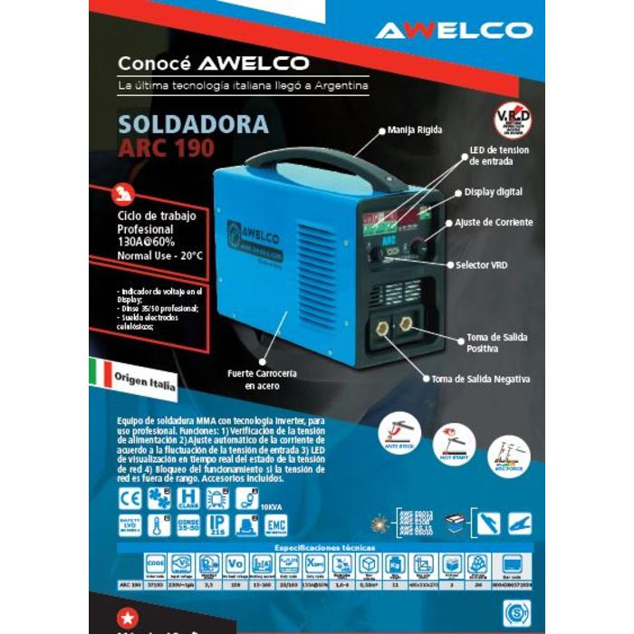 Soldadora Awelco Italiana Arc 190 Inverter 160 Amp