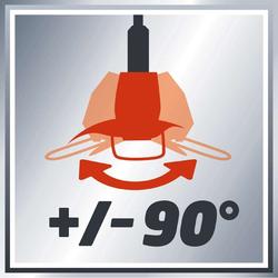 • Gracias a su mango auxiliar regulable sin escalonamientos y a su cabezal del motor giratorio en +/- 90º, que también se puede inclinar en cinco posiciones, es posible trabajar de forma cómoda y sin esfuerzo incluso en condiciones de trabajo difíciles, como superficies verticales o agujeros