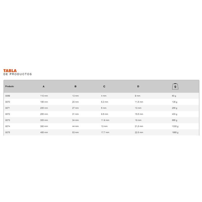 • Según ISO 6787 - DIN 3117 - ASME B107.8M-2003 y BS 6333