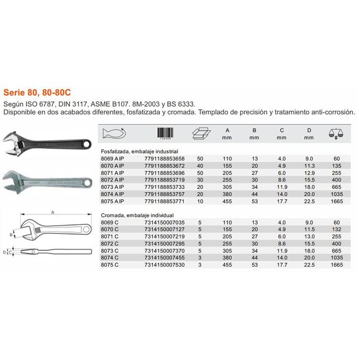 Llave Ajustable Fosfatada Bahco 8070A IP
