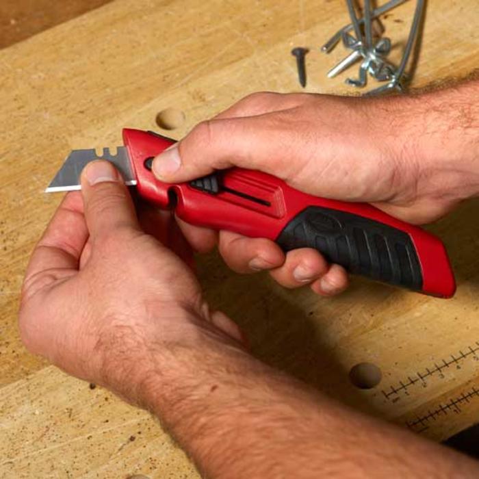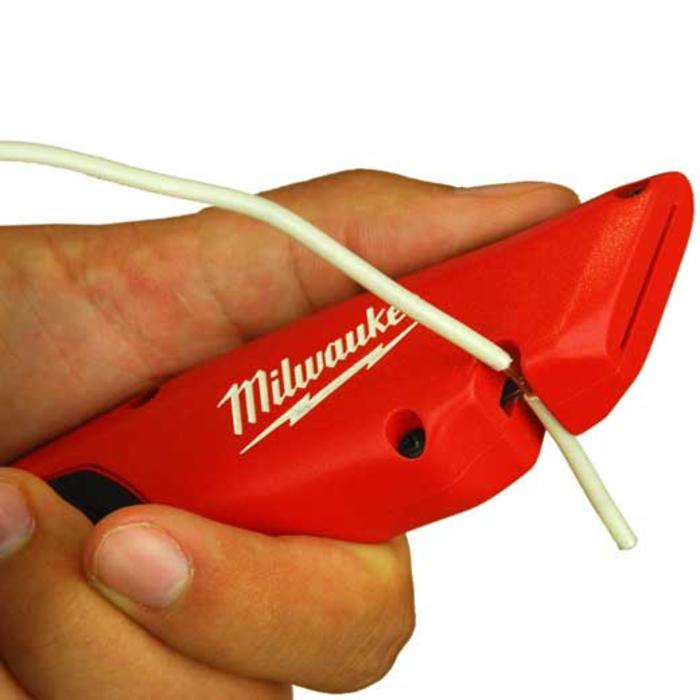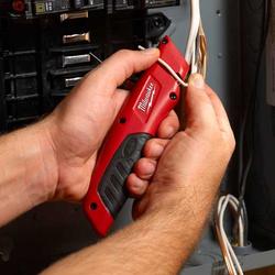 • El cutter Milwaukee® cuenta con una sujecion sobremoldeada para el pulgar que reduce el movimiento accidental de la hoja