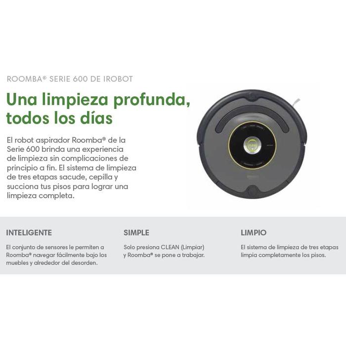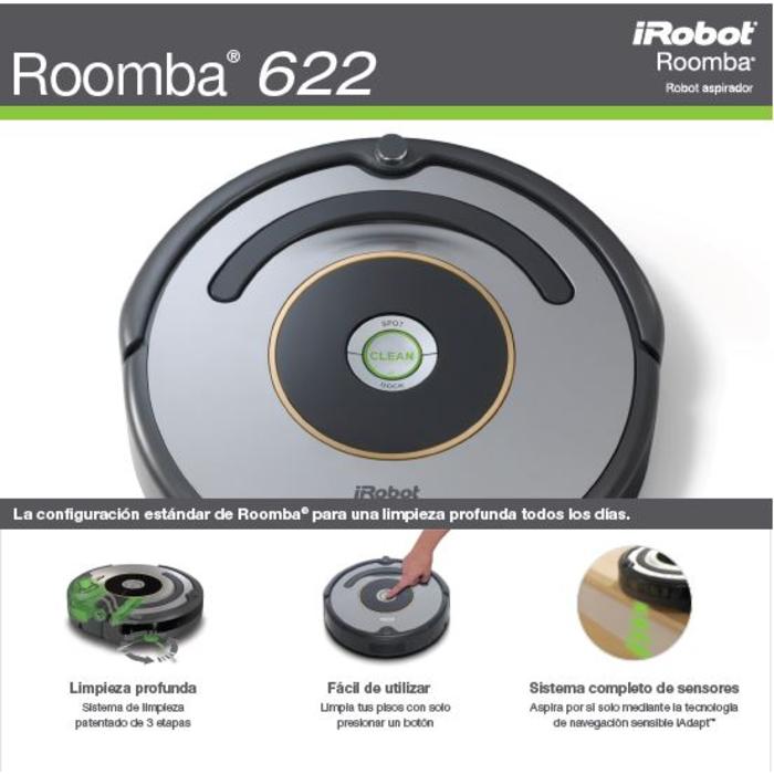 • La Roomba® 622 es fácil de utilizar: solo presiona el boton CLEAN (Limpiar) y Roomba comienza a trabajar usando la navegación sensible iAdapt? para desplazarse por los rincones y recovecos de tus habitaciones