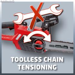 • No se necesitan herramientas para ajustar la tensión de la cadena o reemplazar la cadena
