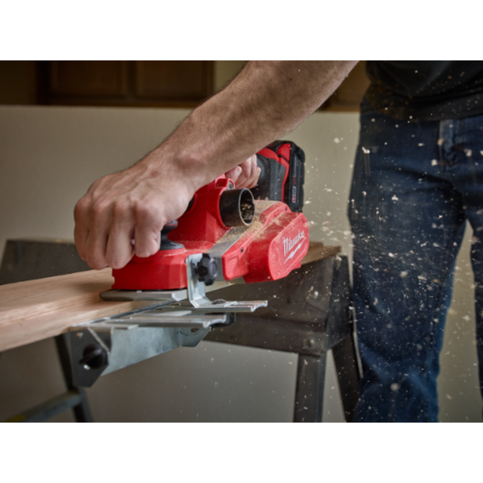 • La cepilladora M18 ? de 82MM ofrece un control de profundidad inigualable y una eliminación de material potente para una eliminación rápida y precisa del material en maderas blandas o duras