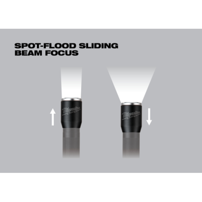• Una cabeza deslizante permite a los usuarios ajustar su patrón de haz de punto a inundación con una distancia de haz de hasta 155 metros
