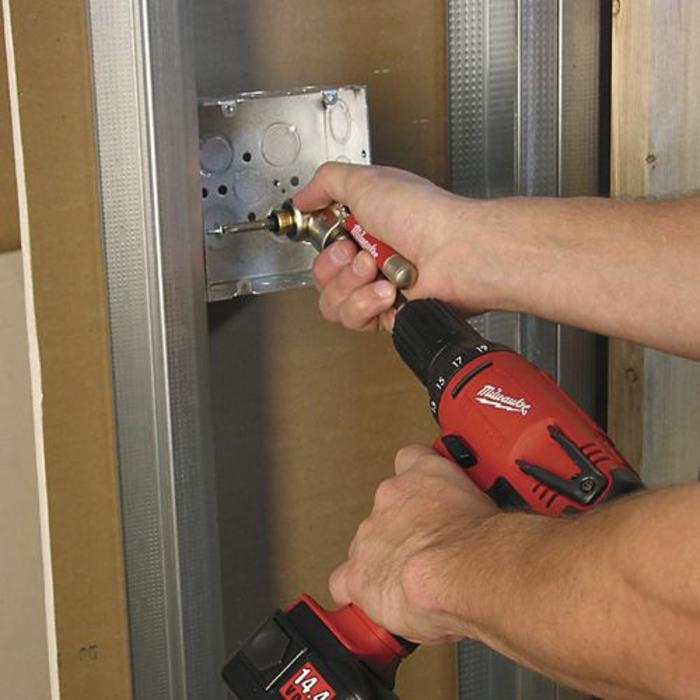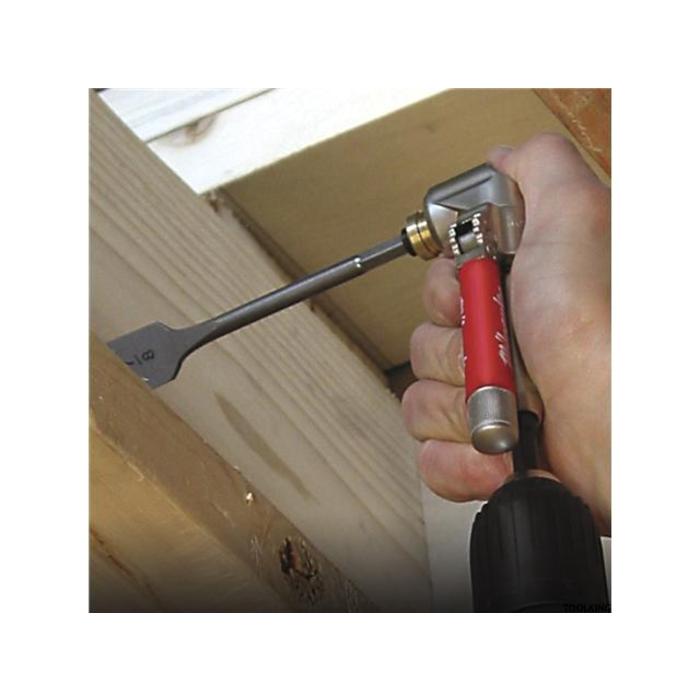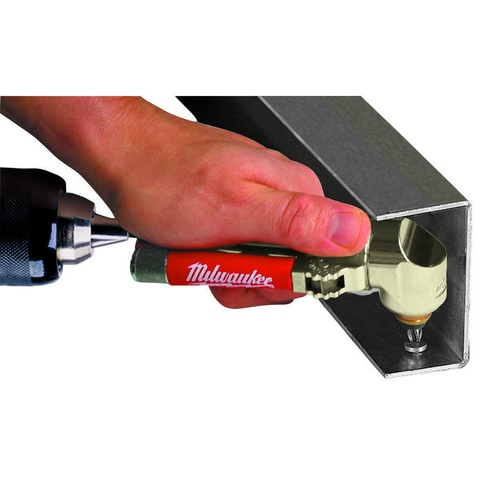 • El acople de ángulo recto de Milwaukee permite a los usuarios colocar tornillos y taladrar agujeros en áreas de trabajo difíciles y estrechas