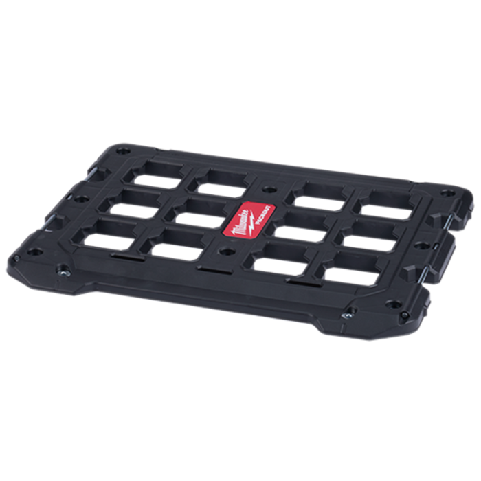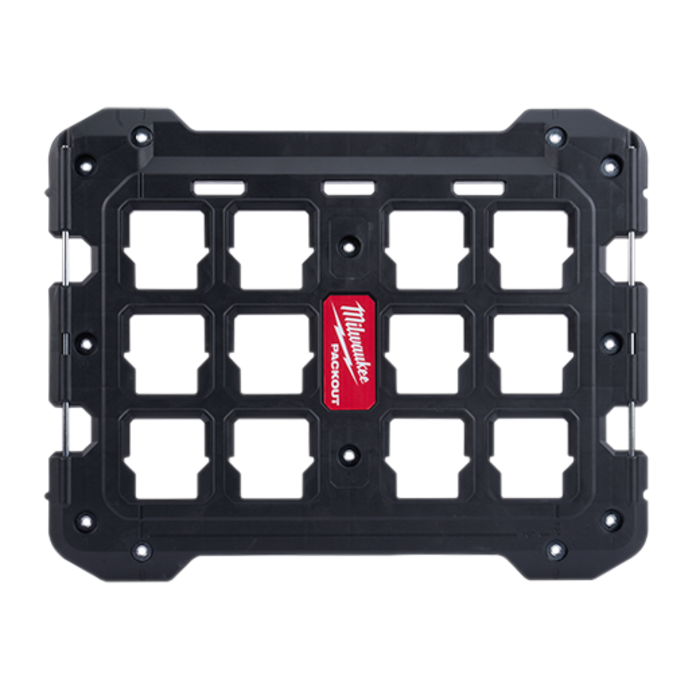 • La placa de montaje MILWAUKEE PACKOUT está construida con polímeros resistentes al impacto, lo que le brinda una capacidad de peso de hasta 45Kg cuando se monta en el piso y 22.5Kg cuando se monta en la pared
