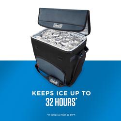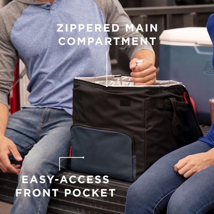 • El compartimento principal con cremallera se ajusta hasta 54 latas, y sella en frío con un aislamiento de primera calidad, manteniendo el hielo por hasta 32 horas en temperaturas de hasta 30°C