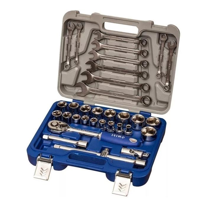 • Juego de tubos encastre de 1/2" y llaves combinadas