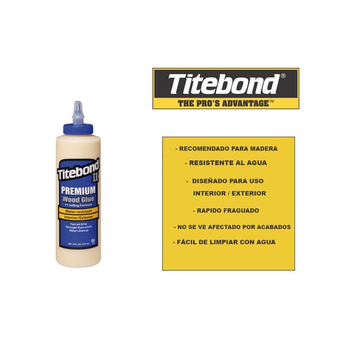 • Titebond II Premium Wood Glue no es para inmersión continua ni para uso debajo de la línea de flotación