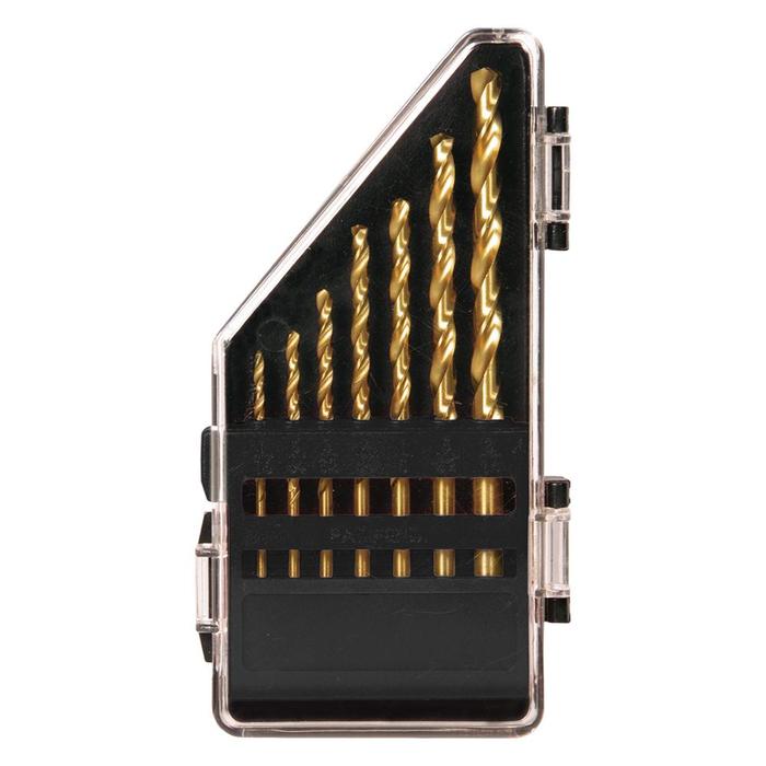 • El recubrimiento de titanio resiste la corrosión, reduce la fricción, aumenta las velocidades de perforación en metal y extiende la vida útil de la broca
