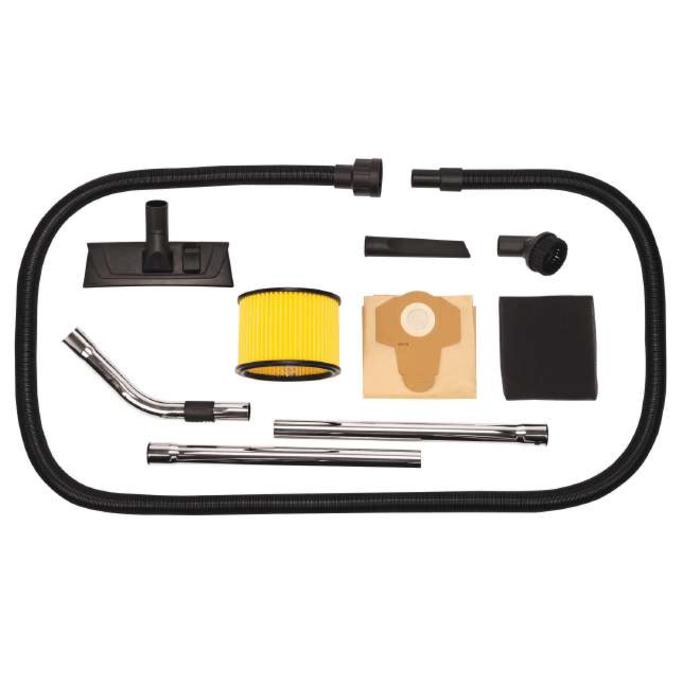 • Con un tubo flexible de aspiración de 2.5 metros dotado de regulador del aire secundario, un tubo rígido de aspiración de dos piezas, una boquilla con selección de suelo seco y húmedo, un adaptador para la conexión de aparatos eléctricos, una boquilla para ranuras y una boquilla para tapizados, este aparato está equipado para casi cualquier aplicación