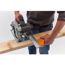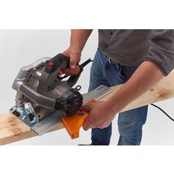 • El riel de guía de sierra de 14" facilita el corte de cortes largos y rectos o el uso como guía de sierra