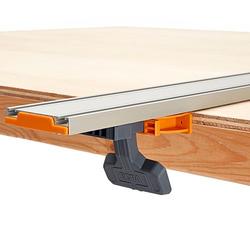 • Simplemente enganche el Clamp Edge a través de su tabla, alinéelo con su corte y fíjelo, todo sin mover los pies.