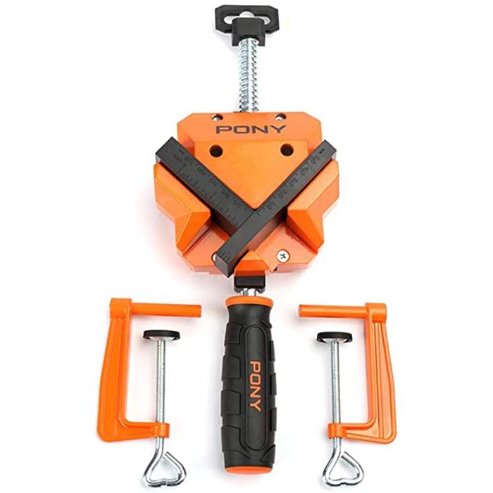 • La abrazadera de ángulo Pony con abrazaderas de mesa es perfecta para enmarcar y ensamblar gabinetes
