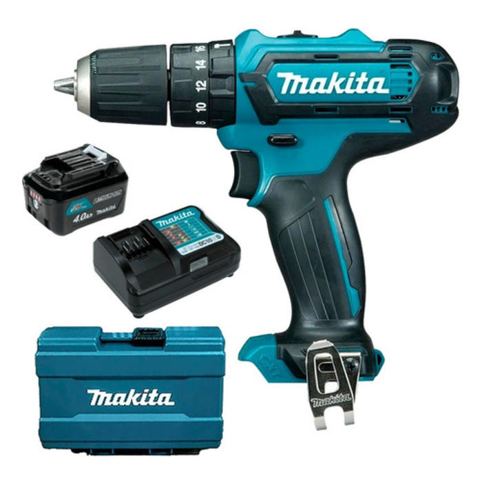 • Incluye: 1 taladro atornillador Makita HP331DZ, 1 cargador Makita DC10WD, 1 batería 12V 4Ah Makita BL1041B y 1 gavetero Makita B-62072 (medidas 150x102x44MM)
