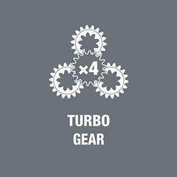 • Un engranaje de acero, robusto y sin mantenimiento; con un par máximo de 14Nm con la función turbo desactivada