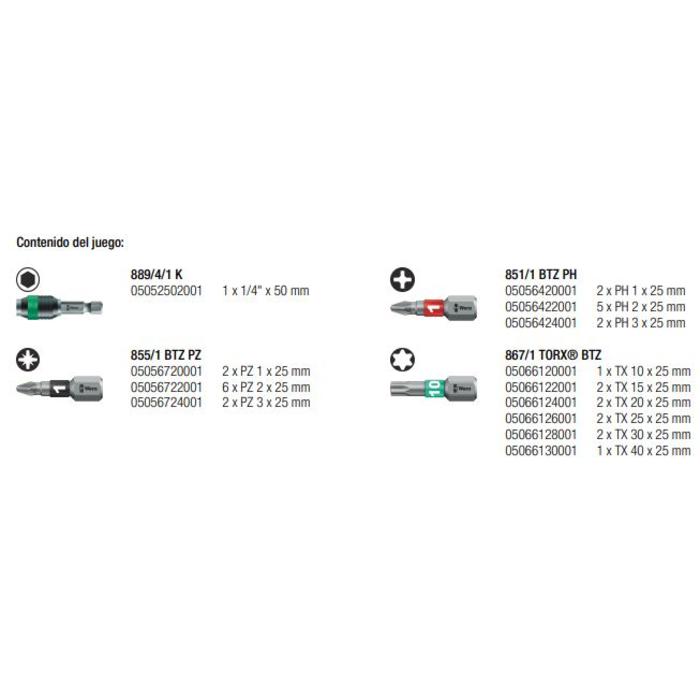 Set de 30 Puntas para Destornillador Wera Bit-Check 30 BiTorsion 1