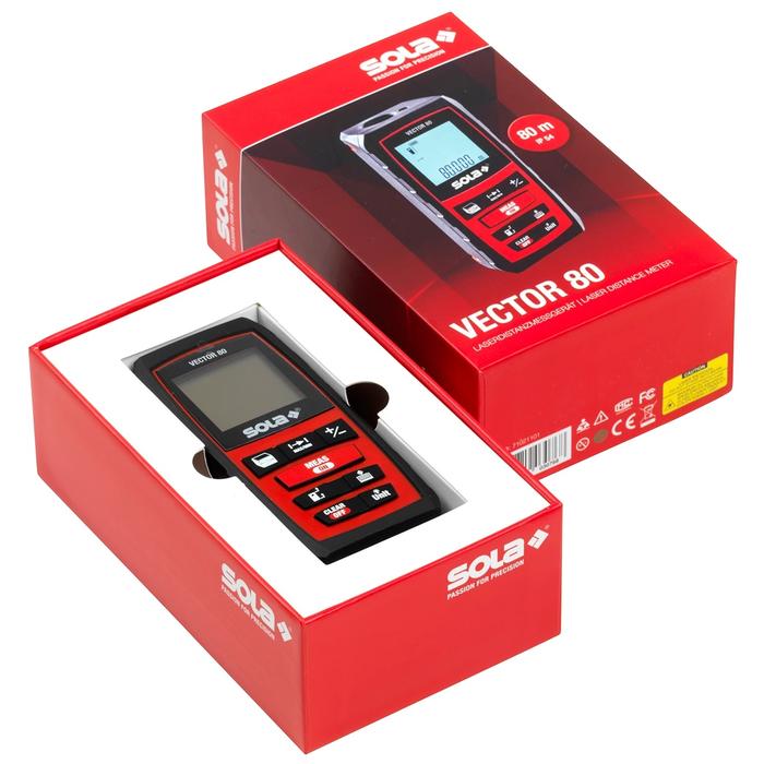 • El VECTOR 80 mide distancias de hasta 80 metros con una precisión de ± 1.5MM y es ideal para mediciones en interior y exterior