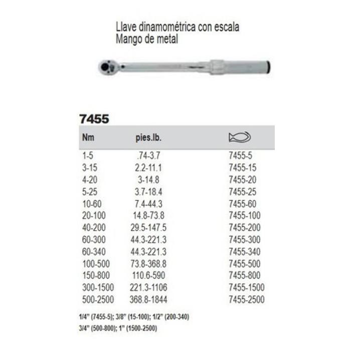 • Escalas duales en N.m/ft.lb y N.m/in.lb