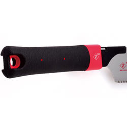 • La empuñadura ensanchada final revestida con elastómero antideslizante está diseñada para un agarre cómodo y menos fatiga en los trabajos