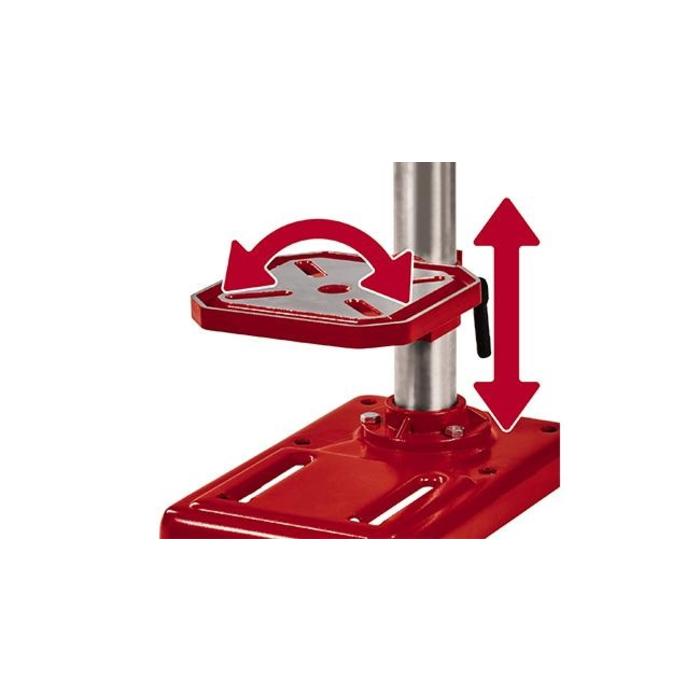 • La taladradora de columna se puede ajustar de forma variable gracias a la regulación continua de la altura de la mesa de taladrado