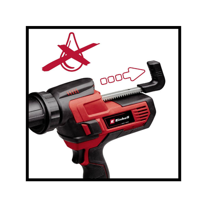 • Por la potencia de la batería, una varilla de empuje instalada en el equipo saca el material de forma regulada y controlada del cartucho - automáticamente y sin esfuerzo de la propia mano