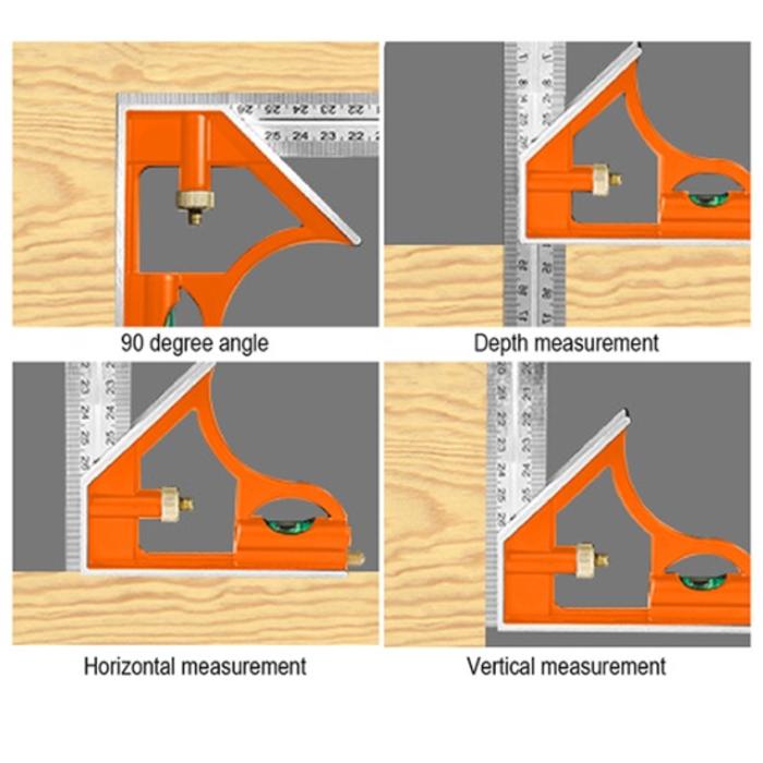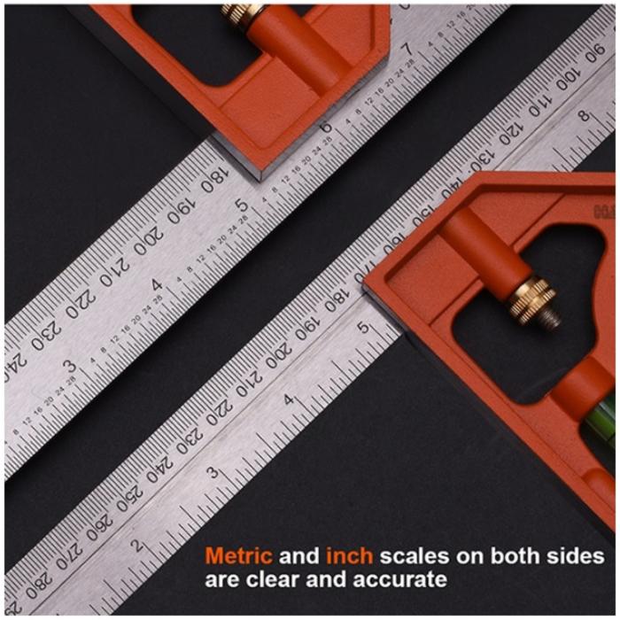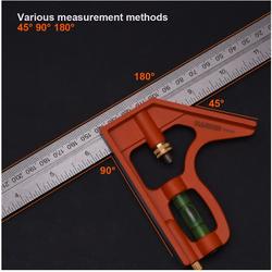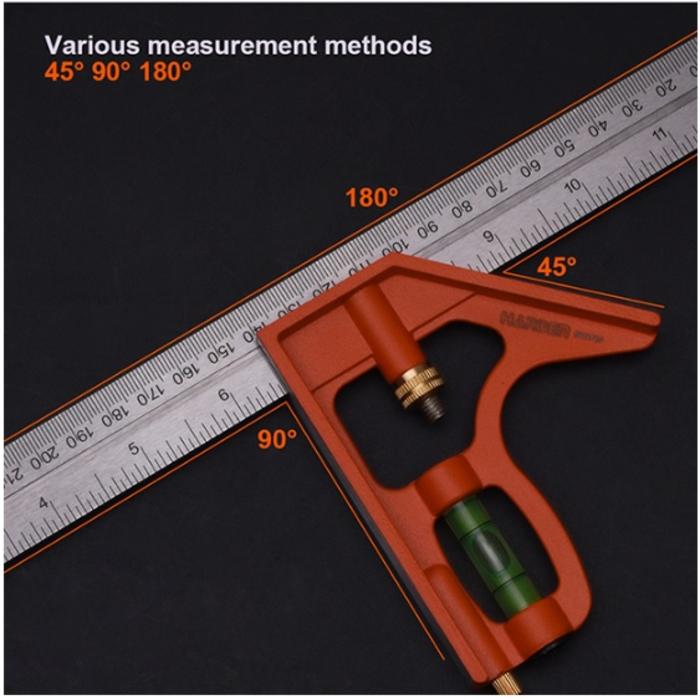• Puede medir 90 grados dentro y fuera del ángulo recto, medición de pendiente de ángulo de 45 grados, medición horizontal de 180 grados
